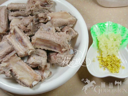 1、排骨洗净斩段飞水,捞出沥干水分。