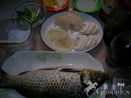1、鲤鱼一条,一斤,去鳃,去鳞,剖肚,清理干净。