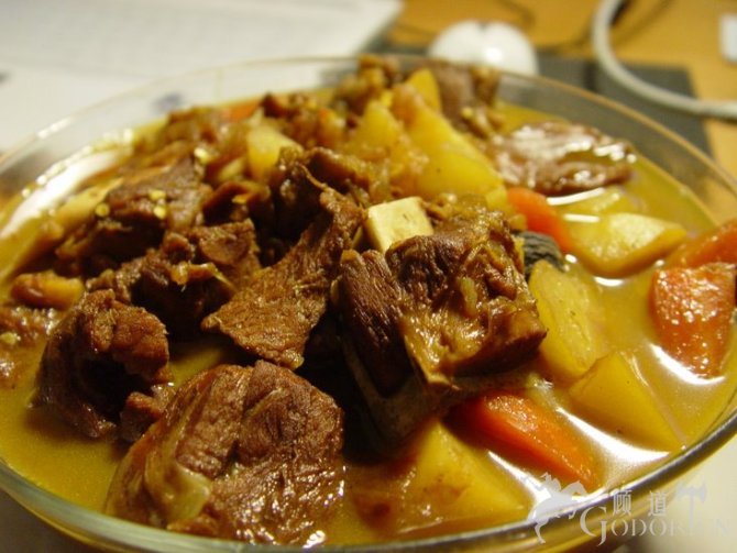 1、羊后腿肉洗净,切成小块。白萝卜、土豆去皮切块